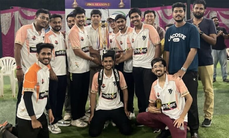 जळगाव, 19 ऑगस्ट 2025 (प्रतिनिधी): IT DigiTech Solutions यांच्या संयोजनात जळगाव जिल्ह्यातील सर्व समाजातील खेळाडूंना एकत्र आणणारी जळगाव बॉक्स क्रिकेट लीग (JBCL) 2025 (सीजन 2) चे यशस्वी आयोजन 16 आणि 17 ऑगस्ट 2025 रोजी गोरजाबाई टर्फ येथे पार पडले. या स्पर्धेत 16 संघांनी सहभाग घेतला, ज्यामध्ये खेळाडूंची ग्रेडनिहाय समान निवड पद्धतीमुळे सर्व संघ तुल्यबळ ठरले आणि स्प>:<ःस्पर्धेने प्रेक्षकांना खिळवून ठेवले.