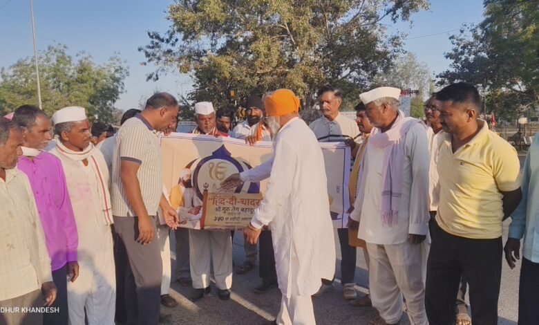 पाचोरा: हिंदू धर्माच्या रक्षणासाठी सर्वोच्च बलिदान देणारे श्री गुरु तेग बहादूर साहिब यांच्या ३५० व्या शहिदी समागम पर्वाचे आयोजन नवी मुंबईतील खारघर येथे करण्यात आले आहे. ‘हिंद की चादर’ या विशेष सोहळ्यासाठी पाचोरा तालुक्यातील बंजारा, लभाना, शिख, शिकलकरी, सिंधी, उदासीन आणि वारकरी संप्रदायाचे भाविक मोठ्या उत्साहात रवाना झाले. याप्रसंगी पाचोरा तहसीलदार विजय बनसोडे यांनी उपस्थित राहून भाविकांना शुभेच्छा दिल्या. महाराष्ट्र शासनाच्या वतीने २८ फेब्रुवारी आणि १ मार्च २०२६ रोजी आयोजित या भव्य कार्यक्रमाला देशाचे पंतप्रधान नरेंद्र मोदी, केंद्रीय गृहमंत्री अमित शहा, मुख्यमंत्री देवेंद्र फडणवीस, उपमुख्यमंत्री एकनाथ शिंदे, उपमुख्यमंत्री सुचित्रा पवार यांच्यासह विविध राज्यांचे मुख्यमंत्री आणि प्रमुख मंत्री उपस्थित राहणार आहेत.